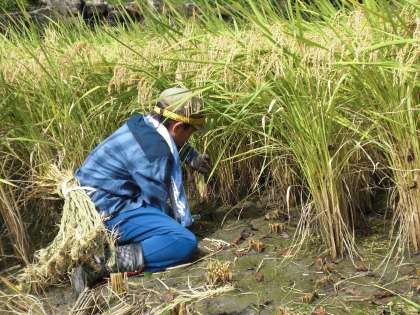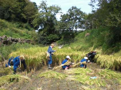 暑い中、慣れない鎌やすがいでの作業に、四苦八苦しました。しばらく、天日干しします。