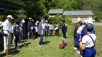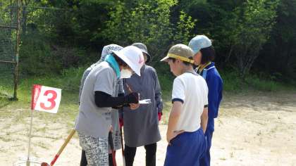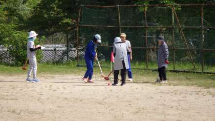 10日(水)の午後、6年生が幸生会の方々とグラウンドゴルフを通して交流をしました。少し緊張した様子で自己紹介を行い、ルールやコツを聞きながら一緒にグラウンドゴルフを楽しみました。