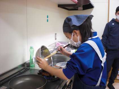 家庭科の調理実習で卵焼きを作りました。それぞれの家庭の味を再現し、個性豊かな卵焼きが完成しました。