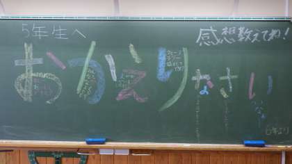 学校では、6年生が温かい黒板メッセージを用意してくれていました。
