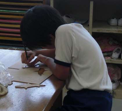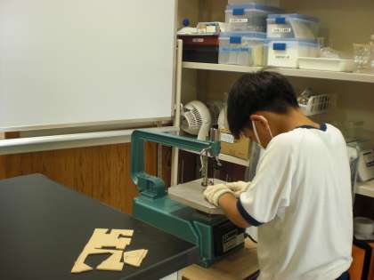 初めての糸のこぎりに、どきどきしながら楽しく作品作りに取り組んでいます。