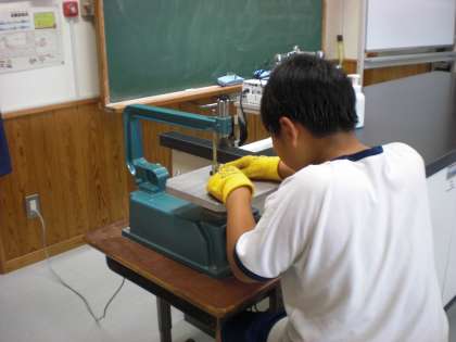 5年生が図工「糸のこ すいすい」の作品作りに取り組んでいます。
