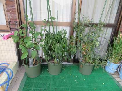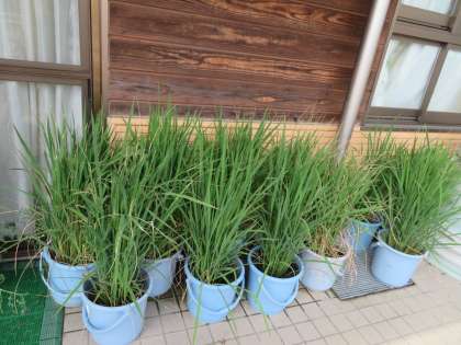 学校玄関前に避難させていた野菜やバケツ稲たちも元気に育っています。