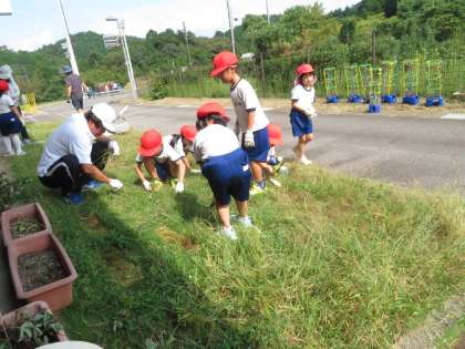 根を強く張って抜きづらい草もありましたが、みんなで「草取り名人」を目指して頑張りました。