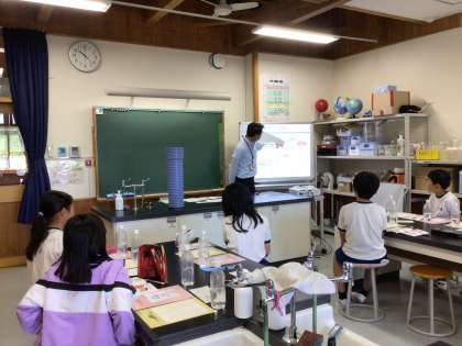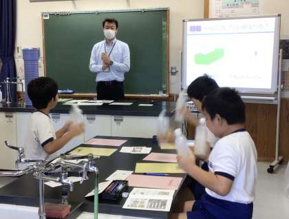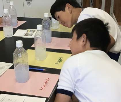 豊田市上下水道局の職員の方に「下水道出前講座」を開いていただきました。まず、下水道の歴史や仕組みについての説明を聞きました。それから、トイレットペーパーやティッシュペーパーが水に流れるか実験しました。安心な生活を守るために下水道があることを知り、自分たちにできることを考えるきっかけとなりました。