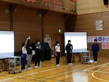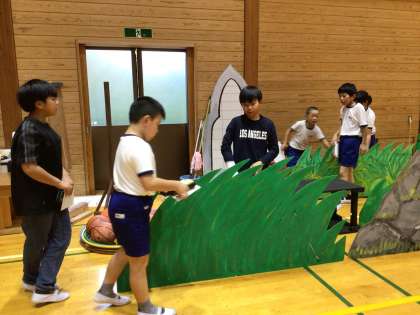 5年生は、みんなで声を合わせる箇所の確認をしていました。6時間目は、係の打ち合わせを行いました。4・5・6年生は、照明や、大道具など裏方となり、全校の発表を支えます。