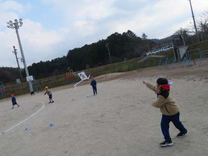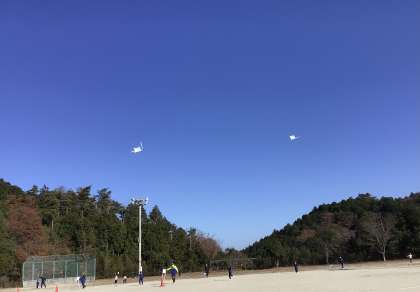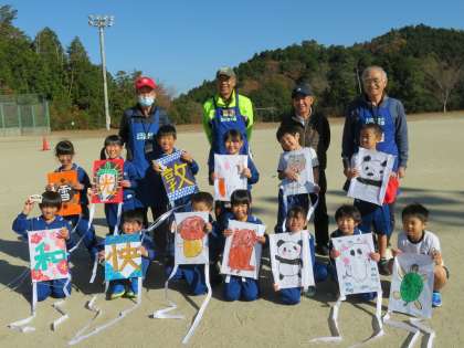 1・2年生が和凧作りに挑戦しました。昨日に続き、豊田ものづくりサポーターの方の教えを受け、糸目糸と揚げ糸を結び、完成させました。運動場で揚げ方のこつを教わり、快晴の空のもと風にのって高く揚がる凧に、大満足でした。