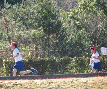 快晴の空のもと、マラソン大会を行いました。1・2年生は850メートル、3・4年生は1300メートル、5・6年生は1700メートルです。たくさんの応援を受け、汗びっしょりになりながら、最後まで全力で走りました。