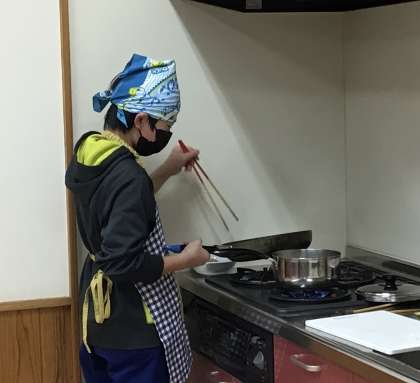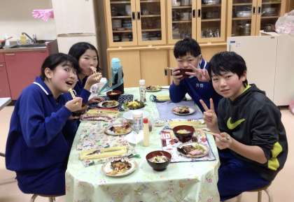 6年生が家庭科「まかせてね 今日の食事」の学習を行いました。まず、栄養バランスに気をつけ、1食分の献立を考えました。今日は、その中から1品を作りました。スープ、野菜炒め、野菜のベーコン巻き、豆腐ハンバーグとそれぞれ工夫を凝らしていました。完成品はお互いに試食し、彩りや味の良いところを見つけていました。