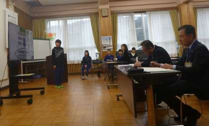 6年生がいきいき学習(総合的な学習の時間)で学んできた「冷田幸福論」のまとめとして、足助支所で地域振興の提案を行い、市議会議員や支所の方に聞いていただきました。貴重な意見もたくさんいただいたので、これからもよりよい冷田になることを目指して、自分たちができることに取り組みたいという気持ちを強くしました。