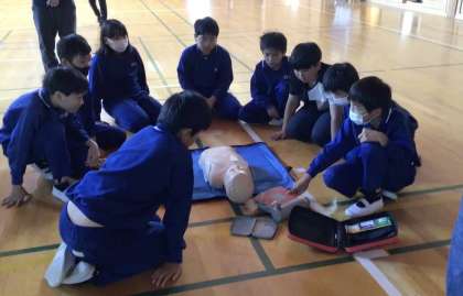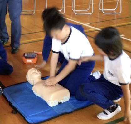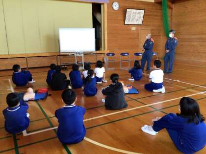 足助消防署の方に来ていただき、5・6年生が応急手当講習会を受けました。はじめに、簡単な応急手当ての重要性や方法について、学びました。次に、胸骨圧迫(心臓マッサージ)やAEDを実際に行いました。これをきっかけに、救命救急の必要性を知り、命の大切さを考えてほしいと願います。
