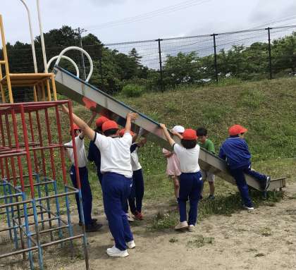1回目のファミリー遊びを行いました。この日のために、運営委員会で低学年も楽しめる遊びを考えてきました。体育館では「だるまさんの1日」、運動場では「けいどろ」、「色おに・氷おに」とどの班も楽しく遊びました。終わると「楽しかった」「また遊びたい」という声がたくさん聞かれ、企画した運営委員も大満足です。