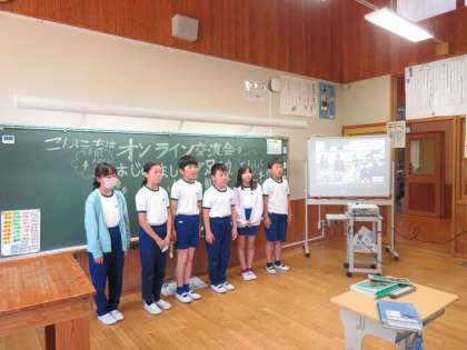 昨年度から実施している足助小・則定小とのオンライン交流会を、今年度も5年生で実施しました。自己紹介とともに、各校で準備した学校クイズを行い、お互いのことや各校のことを知るよい機会となりました。クイズには、冷田小のよいところとして「あいさつがしっかりできる」ことや、冷田のゆるキャラ「ウリボタル」を紹介していました。