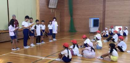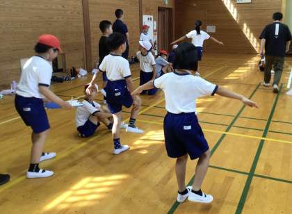 広報体育委員による第1回「冷田ギネス大会」が開かれました。今回は、片足立ちバランス競争です。目を閉じて方足立ちをし、何秒間耐えられるか、競いました。委員会の楽しい企画に、全校で盛り上がりました。