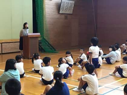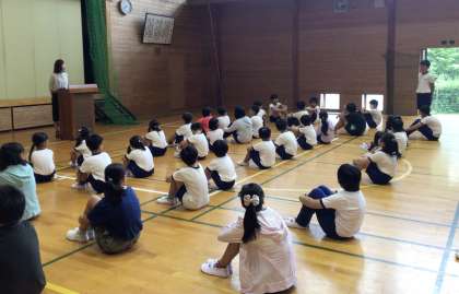 「夏休み明け集会」では、真剣に校長先生のお話を聞きました。