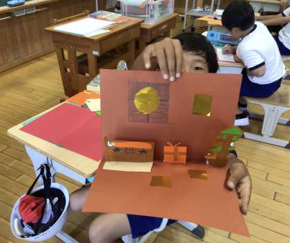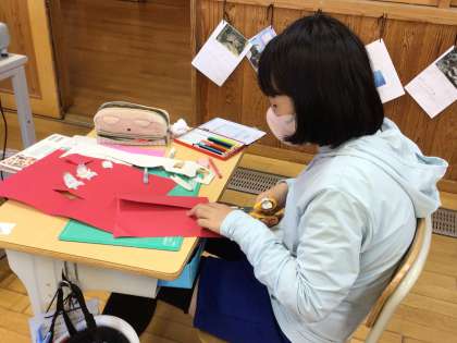 4年生が図画工作科で「カードでつたえる気持ち」の学習しました。飛び出す仕組みを使ったカード作りです。相手を思い浮かべて、切り込みを入れ、絵やメッセージをかきました。来週は、仕上げです。
