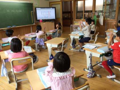 1・2年生 音楽科「はくにのって リズムをうとう」の学習です。今日は、「しろくまのジェンカ」を歌ったり、リズム打ちをしたりしました。最後は、友達とつながり、リズムにのってジャンプをしました。楽しいリズムに、みんなノリノリです。