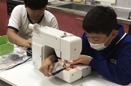 今日は、ナップサックづくりの2回目です。印をつけまち針をうちしつけをして、ミシンで縫っていきます。久しぶりの裁縫に悪戦苦闘をしながらも、お気に入りのナップサックとなるように、頑張っていました。