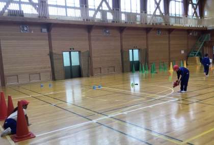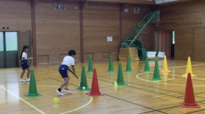 3年生が総合的な学習の時間にユニファイドスポーツについて学んでいます。その中でも、フロアボールに取り組み、学年が違っても、スポーツが得意でもそうでなくても楽しめるようなルール作りを行っています。今日は、個人スキルコンテストの内容を考え、準備をしました。みんなが楽しめるようなアイデアが満載です。