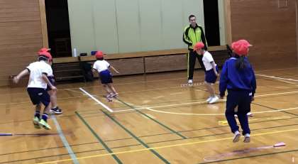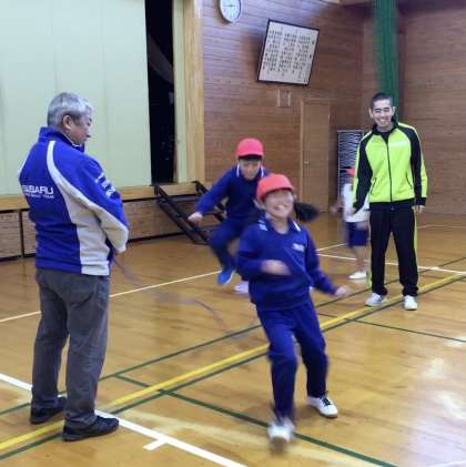 今回は、長縄にも挑戦しました。縄の入り方、跳ぶ位置、出方を聞きステップアップしながらの練習に自信がつき、上達を喜んでいました。