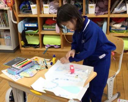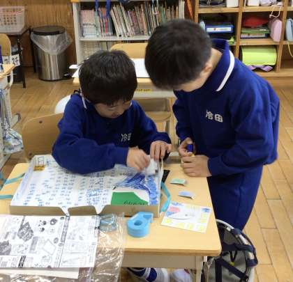 2年生が図画工作科で「わくわく お話ゲーム」を作りました。
