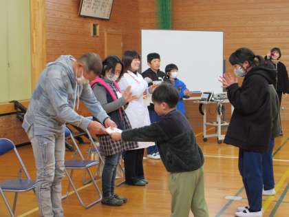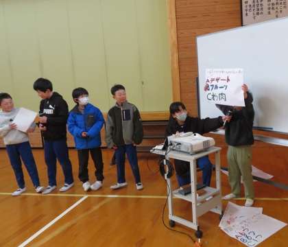 保健給食委員の発表の後、給食に携わっている栄養教諭や公務手に感謝の気持ちを伝えお礼の手紙を渡しました。これからも、たくさんの人のおかげで給食が作られることに感謝して、おいしく食べてほしいと思います。