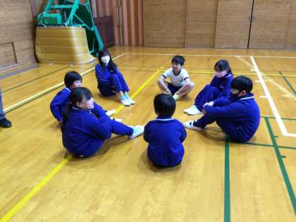 異学年のつながりを作り、上級生は下級生を導くことでリーダーとしての力や思いやりの心を育てる、下級生は上級生の姿に憧れをもち、集団としての行動を身につけていく等のねらいからクラスを超えた縦割り活動を行っています。今後、校外学習やファミリー遊び、掃除などで一緒に活動していきます。今日は第1回目の顔合わせということで自己紹介ゲームでお互いの名前や好きなことを覚えていきました。これからもどんどん仲良く活動していきましょう。