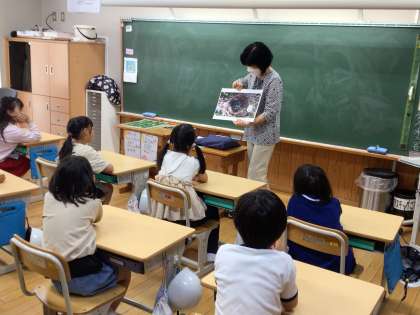 本年度初のお話ゆうえんち(読み聞かせ)が行われました。今年度も3名の方にお願いしています。子どもたちの年齢などを考えて興味がもてそうな本を選んだり、読み方を工夫したりして本を読んでいただけます。本日はクイズもあり、子どもたちは目を輝かせて食い入るように絵本や写真を見たり、お話を聞いたりしていました。読書は心の栄養とも言われます。本を通して世界を広げ、いろいろな知識をつけたり、想像力を豊かにしたりしていきましょう。