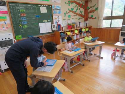 1年生にとって、初めてのタブレット端末を操作する授業でした。