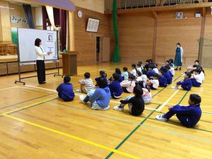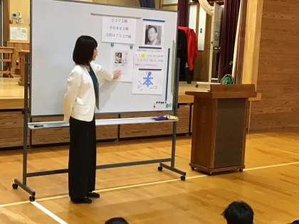 6月の全校朝会が行われました。図書委員会主催の春の図書館祭りのイベントに合わせて校長先生から本に関するお話やクイズが出題されました。中でも、校長先生が小学生の時に読まれた本に登場した場所を実際に訪れてワクワクしたお話はとても興味深く、子どもたちも興味をもって聞いていました。