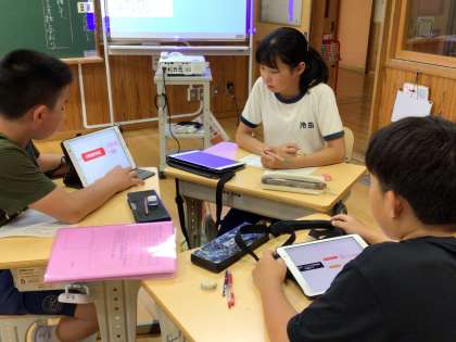 1年生は育ててきたアサガオの葉の枚数や色などを観察、スケッチしていました。5年生は総合的な学習で調べてきたお米「ミネアサヒ」について、稲武地区にある愛知県農総試山間農業研究所の方に来校していただいて、どのような水温が適しているかなど、その特徴について詳しくお話をお聞きしました。6年生は国語の学習で、「ふれあいフェスタ冷田に多くの人を呼ぶためにどうすればいいか」という課題についてプレゼンを行うために、自分の主張についての根拠を学習用タブレットを活用して整理していました。