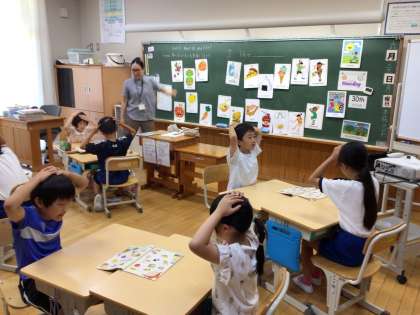 3・4年生の外国語活動の様子です。身の周りの自分の好きなものについて、英語で言い表す活動をALTや担任の先生と共に大きな声で発音したり、ジェスチャーをつけたりと楽しく取り組んでいました。何度も繰り返し練習して、いろいろな表現を身につけていきましょう。