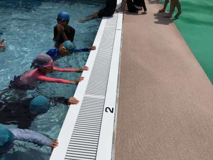 今年度最後の水泳学習が行われました。自分の立てた目標達成に向けて頑張っている子がたくさんいて、水泳学習が始まった頃よりも水が怖くなくなった子、蹴伸びが上手になった子、息継ぎがスムーズになった子、遊泳距離が伸びた子など、短期間の学習でしたが、進歩が見られました。今回の学習で学んだことをよく覚えておいて次年度にも生かしていきたいですね。