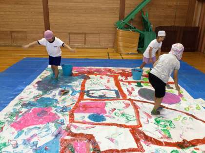 5年生は近隣の足助小、則定小、本校の3校で英語のオンライン授業交流を行いました。できる、できないの表現を英語で使ったクイズをお互いに出しあっていました。2年生は図工の授業で体育館に敷いた大きな紙の上で足などを使ってダイナミックにボディーペインティングの授業を行っていました。滑って転びそうになる子もいましたが、とてもカラフルな作品ができました。3・4年生はミニコンサートとしてお家の人や他の学年を招待し、今まで音楽の授業で練習してきたリコーダーや鍵盤ハーモニカの演奏を披露しました。保護者の方からも素敵な演奏でしたという感想をいただきました。演奏も素敵でしたが、司会の人や曲のポイントを紹介した人の話し方もすごく上手になっていました。参観いただいた保護者の皆様ありがとうございました。