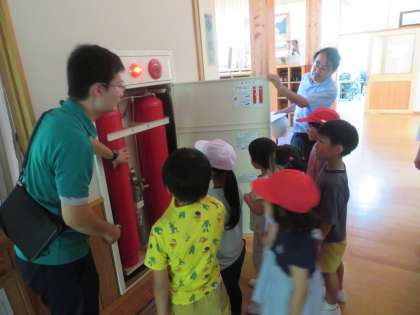 「わんぱくタイム」に火災発生を想定した避難訓練をしました。