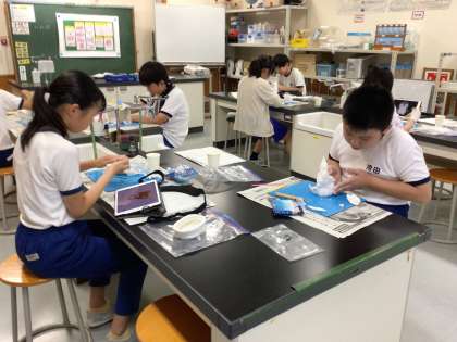 1年生、6年生は図工で紙コップや粘土を使って作品作りに取り組んでいました。傑作ができたかな。