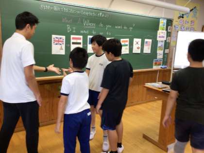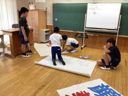 外国語科の学習では、世界の国々の中で自分が行きたい国とその国ではどのようなことができるかについて英語でコミュニュケーションしていました。学活の時間には、掲示用の運動会のスローガンを作成していました。最高学年として影でも冷田小学校を支えてくれています。