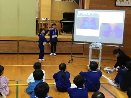 全校朝会では、科学研究作品や短距離走の記録が昨年度より向上した児童の表彰がありました。また、保健給食委員会から風邪など感染症予防のための手洗いの仕方について発表がありました。発表は寸劇になっており、楽しくポイントがよくわかるものでした。5時間目には、教員研修として1年生の国語の授業を見て、子どもたちが粘り強く考えられるようにするための手立てについて意見交換しました。