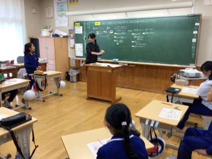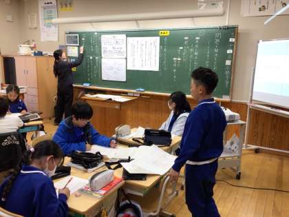 3・4年生は外国語活動で、ALTの先生と一緒に時間の言い表し方を学びました。5年生は、3時間目には市の学習プログラムを活用して、豊田市子ども条例について学び、自分や友達を大切にするためにはどのようなことに気をつければよいか考えました。また、5時間目には総合的な学習の活動を題材に、国語科で自分の考えを広げるための話し合いの仕方を考える授業を行いました。教員研修としても位置付け、より効果的な教師の支援の仕方等について、話し合いを行いました。