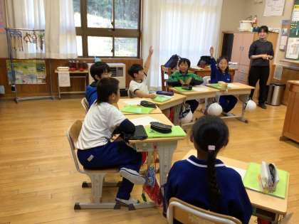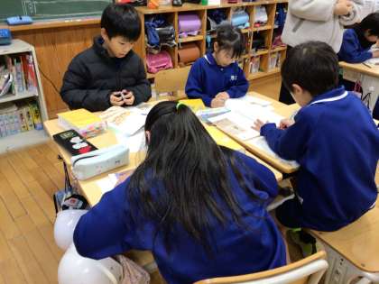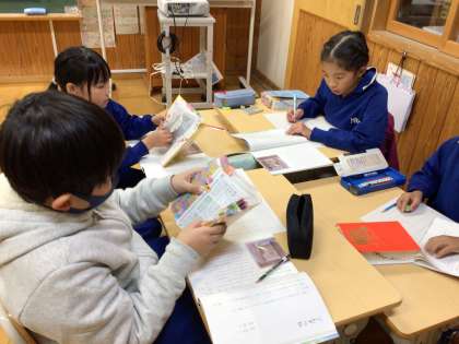 3・4年生は、国語科の「ごんぎつね」のお話を読み、内容を読み取るために言葉の意味調べを行いました。5年生は、総合的な学習で栽培したお米を地域のお店で販売する活動に向けて、お米のおいしさをアピールするためのキャッチコピーを考えていました。