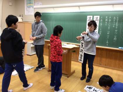 本日から書写ボランティアの講師の先生による指導が始まりました。道具の配置の仕方や字のバランスの取り方など細かい所まで丁寧に教えていただいています。学んだことを生かして書き初め大会に向けて練習を積み重ねていきましょう。お昼の休み時間には、第3回目のファミリートークが行われました。今回のテーマは「災害が起きた時に家から避難所に何を持って行くか」です。ファミリー班で考えを交流する中で、自分にはなかった視点に気が付いたり、友達の考えの良さを感じたりして対話的な学習の力を養っていきましょう。