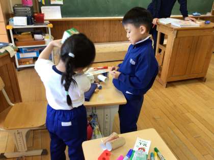 1年生は冷田こども園との交流に向けて園児の子が楽しめるおもちゃを工夫しながら作っています。かわいいもの、サイズが大きいものなど様々な作品が教室に登場していました。5年生は今まで作ってきたエプロンが完成し始めています。今後、家庭科の授業などで使うのが楽しみですね。6年生は色の塗り方や重ね方を工夫しながら読書感想画の作製を行っていました。傑作の完成が待ち遠しいです。