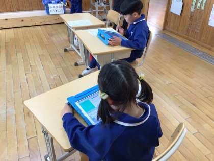 5年生は、保健学習として養護教諭から姿勢をテーマに学びました。最初に背筋を伸ばしたよい姿勢を確認した後に、背筋を伸ばした姿勢の利点について内臓が圧迫されないことで、血行が良くなり、体の不調が無くなるなどの効果を学びました。1年生は学習用タブレットにある問題練習用ドリルの使い方を確認していました。今後どんどん問題練習に取り組み漢字、計算などの力を高めましょう。
