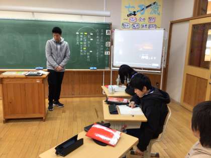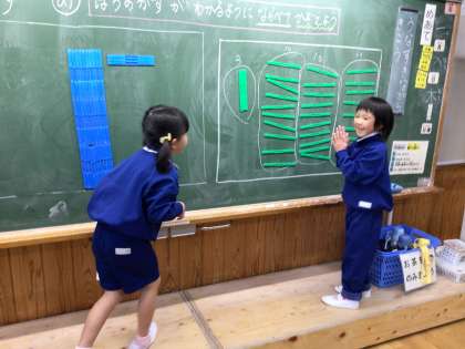 1年生の算数科では、大きな数の学習で10のまとまりを作ることに気づき、視覚的にわかりやすく自分の考えを伝えていました。2年生は、一人ずつかけ算の暗唱に取り組んでいました。6年生は、教科書の教材をもとに日本の伝統文化の狂言を学習していました。