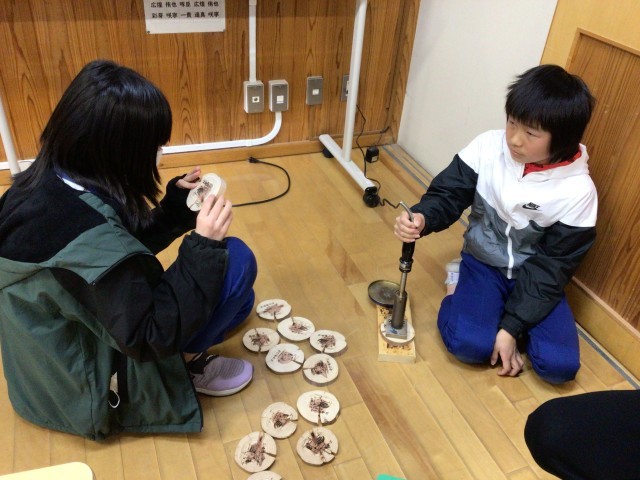 わくわくどきどき発表会の練習がどの学年も進んでいます。本日からお互いの学年の発表の様子を見合い、アドバイスをし合う活動が始まりました。子どもたちはお互いの発表をよく見て、声の大きさや話すスピードなど的確にアドバイスをし合う様子が見られました。また、6年生は発表の準備として冷田地区の雑木を使ったコースターづくりのために木に焼き印を押していました。これからの練習でお互いのアドバイスを生かし、さらによい発表にしていきましょう。