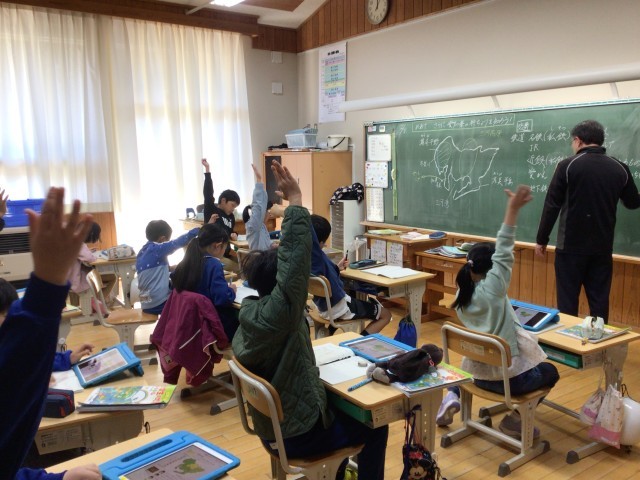 1年生は生活科の授業で、1年間を振り返り、小学生になってできるようになったことをまとめていました。3・4年生は、愛知県の農業や工業など産業について、学習しました。5年生は、土曜日のわくわくどきどき発表会のプレゼン発表練習を行いました。