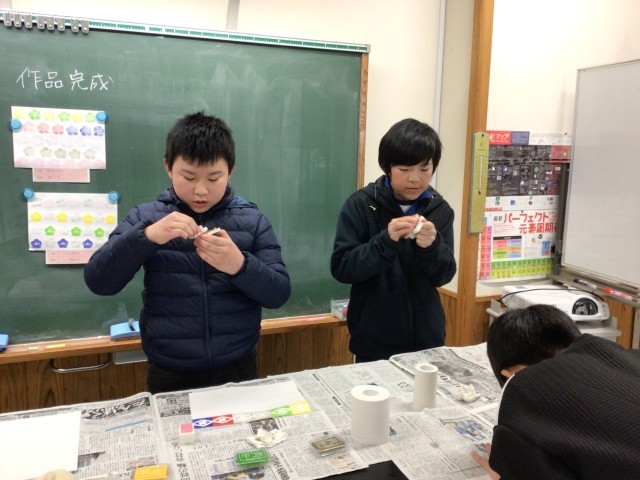 6年生の図画工作科の学習では、市松模様や麻の葉など日本の伝統的な模様を消しゴムはんこにして、版画の作品を作っていました。5・6年生の体育科では、開脚跳びや、抱え込み跳び、台上前転に熱心に取り組んでいました。2年生の生活科の学習では、動くおもちゃづくりを夢中になって行っていました。