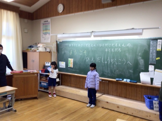 こども園の年長組、保護者の皆様を迎えて一日入学・入学説明会を行いました。保護者の皆さんが説明会に参加している間、年長組と1年生の子どもたちは教室で交流を行い、1年生の子たちが1年間の行事などの小学校生活の様子を伝えたり、ゲーム、音読をしたりしました。4月に元気よく入学して来てくれるのを楽しみにしています。保護者の皆様、ご参加ありがとうございました。