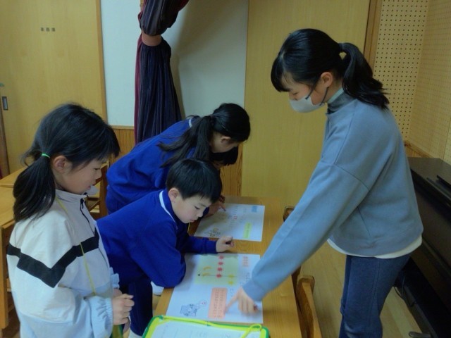 本年度最後の縦割り班によるファミリー遊びが行われました。最後ということで、全ての班が同じ活動に取り組む謎解きラリーを6年生が企画してくれました。図書室や音楽室などの特別教室に用意された問題をファミリー班で回って、上級生、下級生協力して解いていきました。校歌の歌詞に関する問題や絵を見て文字を考える問題など、なかなかよく考えられた問題で、さすが6年生という感じでした。活動を通して、上級生が下級生を優しく導く姿もあり、全校の絆が深まりました。