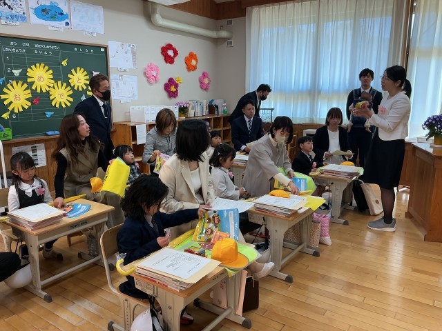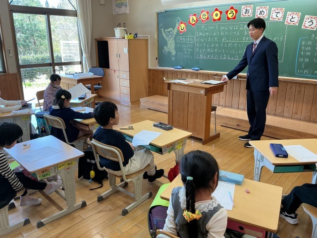 地域の区長様、自治会長様などのご来賓をお迎えして令和8年度の入学式・始業式が行われました。校長先生の式辞では、今年度冷田小学校の児童にがんばってほしいことについて「あ・い・う・え・お」の合言葉でお話がありました。あは、あいさついっぱいの学校、いは、いのちを大切にする学校、うは、うつくしい環境を大切にする学校、えは、えがおいっぱいの学校、おは、おもいやりいっぱいの学校です。1年間、いろいろな場面でこの「あいうえお」の合言葉を意識して実現できるようにがんばりたいですね。本日のさわやかな天気のように、どのクラスでも新しい担任の先生と笑顔いっぱいの学級開きができました。